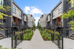 Welcome to Kin Collection by Beedie! This 2 bed + den townhome is ideal for upsizing from a condo or downsizing from a house. Enjoy a stair-free layout, Fisher & Paykel integrated fridge, gas stove, A/C, and a primary bedroom with walk-through closet and ensuite. Relax on the 362 sq. ft. patio. Amenities include a gym, yoga/barre studio, playground, and more. Backing onto a future park and just steps to Royal Oak SkyTrain, schools, and minutes to Metrotown—perfect for comfortable, connected living.