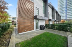 Vittorio by Polygon, heart of Metrotown. 3 bed/2 bath townhome 1353 sqft w/ impressive total 724 sqft 4 separate patios, offer unparalleled outdoor enjoyment. Primary ensuite occupying own floor w/ private 177 sqft rooftop patio, perfect retreat for relaxation/views. Main floor front/back patio total 448 sqft, ideal for entertaining/unwinding amidst the serene surrounding. Natural light through large windows, modern kitchen, spacious island, highend appliances, gas cooktop. Convenient where East meets West, int. cuisines restaurants converge. Transportation nearby, walk distance to Metrotown, community centre, park, bank. Resort-style amenities: clubhouse, exercise, basketball court, kids area. Dont miss this urban living, every element harmonizes, create perfect townhome!