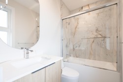 Welcome to this custom 3 level 1/2 duplex nestled on a quiet street in East Burnaby! This 7 Bedroom, 7 Bathroom, 3102sqft home is beautifully designed featuring 10ft ceilings on the main floor. The modern kitchen offers gas cooking, and a large island perfect for entertaining. The open concept dining and living areas are enhanced by large sliding doors leading to your covered deck. A flexible main floor bedroom/office with ensuite as well as a powder room add convenience. Upstairs, you'll find 3 spacious bedrooms each with its own ensuite. STAIRS CONNECTING MAIN FLOOR AND BASEMENT OPTION FOR 2 BEDROOM OR 3 BEDROOM suite as a mortgage helper. High quality finishing throughout including European tiles and engineered hardwood & designer lighting. Open House Sat Jan 31st & Sun Feb 1st 2-4pm.