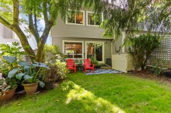 Welcome to Wembley Estates, an exclusive collection of well maintained, family-orientated homes. This 3 bed, 2.5 bath townhome presents nearly 2,000 sf of living space ineluding 3 spacious bedrooms up with a large primary and 3 pe ensuite. A beautifully updated kitchen leads directly to a Sunny, South facing balcony. Expansive, open concept living and dining spaces anchored by a cozy, wood burning fireplace with sliders leading directly to your private backyard. Lower level features rec room with skylight (easily converted to 4th bdrm) as well as a large laundry / workshop room. Two parking provided inel a single attached garage. Serene yet centrally located near to numerous parks, hiking trails, schools inel. SFU, and easy access to Hwy 1. Book your private viewing today!