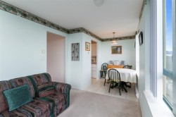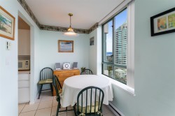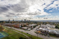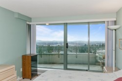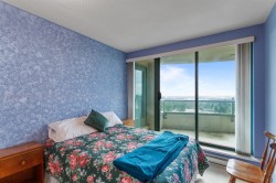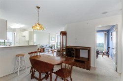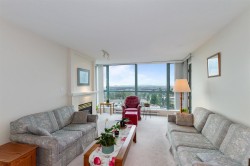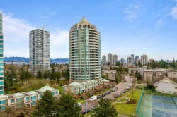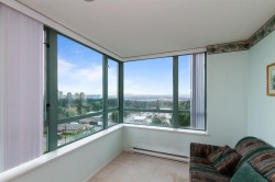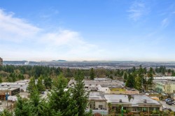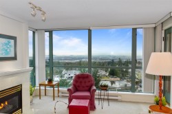 Spotless one owner 2 bedroom plus DEN bright, SE corner suite. Features: Fabulous Southern views, 2 full bathrooms, kitchen with eating area, entertainment sized dining room/living room with cozy gas fireplace. Patio furniture sized sundeck accessible from living room and both bedrooms overlooking view of San Juan Islands and Olympic Peninsula. Spacious primary bedroom has walkthrough closet to ensuite bathroom with soaker tub and shower. In-suite laundry, 1 parking, 1 locker, 1 pet allowed. Desirable Bosa built "The Gibraltar" with exercise room, hot tub, steam room & sauna. Walk to library, schools, Skytrain and Highgate Village with Save-on Foods & Shoppers Drug Mart. Short drive to Edmonds Community Centre, Metrotown, and Bonsor Rec Center.