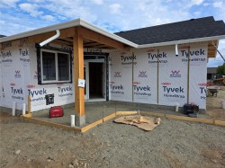 Move in ready in just 10 weeks! Arizona Heights. Campbell River's newest patio home development located in the desirable Willow Point neighbourhood The "A" plan is one of two single level floorplans offering over 1,500 sq/ft of living space. Eleven foot ceilings in the great room and kitchen, combined with 9 foot ceilings throughout the rest of the home offer a wide open spacious feel. The primary is one of 3 bedrooms and features a generous walk-in closet and 5-piece ensuite with soaker tub & 4' shower. These homes are turnkey and ready to move into, including a 6 piece LG Energystar appliance package, blinds, gas fireplace, landscaping, irrigation, double garage with 14' and 24' parking spaces, garage door opener and pre wired for electric vehicle. You'll be delighted with the tasteful finishing, contemporary colours and practical layouts that keep easy living in mind. Prices plus GST. The building scheme for this unit is A-1, with exterior colour scheme 3 (see attached images).