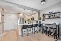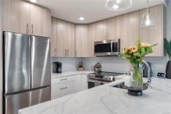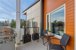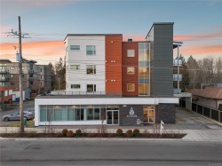 Top-floor living in the heart of Brentwood Bay. This spacious 1-bedroom, 1-bath suite features vaulted ceilings, hardwood floors, quartz countertops, in-suite laundry, and a large west-facing balcony to enjoy the evening sun. Custom designer touches throughout add a polished, elevated feel. The Wallace is a modern, energy-modelled building offering superior soundproofing, secure underground parking, a storage locker, and shared EV charging. Pets and rentals are welcome. Enjoy seaside trails, local dining, spa services, markets, and marinas just steps from your door. With the balance of the 2-5-10 warranty remaining, this is stylish, low-maintenance living in a walkable coastal community. One of the best units in the building!