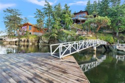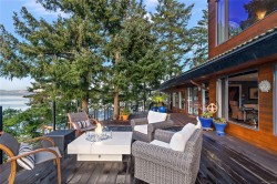 Discover this exceptional 3 Bed/4 Bath, 7,091 sq ft custom waterfront estate on nearly 1ac. with reg. foreshore w/ deep water dock & slipway launch in Willis Point. Enjoy panoramic 180degree Saanich Inlet views w/ west-facing exposure & all-day natural light. A grand 2-storey entry w/ dramatic staircase & water feature sets the tone. Vaulted ceilings, floor-to-ceiling windows, & open-concept living offer seamless indoor/outdoor flow. Designer finishes include custom stone & millwork, crown molding, & luxury details throughout. An entertainer’s dream, the chef’s kitchen anchors the main level, w/ principal rooms opening to expansive decks over the inlet. The primary suite is a private retreat w/ stunning views & spa-like ensuite. Meticulously terraced grounds provide easy waterfront access. Dock great for kayaking or swimming. Tiered gardens, paver walkways, & large accessory building for RV/boat storage. Close to trails, parks, lakes and beaches. A rare coastal lifestyle opportunity.