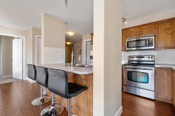 Prime location and incredible value with this beautiful like new 2 bed 2 bath ground floor corner unit! Primary bedroom has full ensuite and double sided walk-through closet. Bright unit with plenty of windows. Lovely balcony and patio to grow herbs/flowers and enjoy sunsets! Entire complex is newly and attractively wrought iron fenced/ gated. Very walkable distance from the amazing and popular new 1881 District. Discover nearby every kind of shopping and all levels of schools. Underground and street parking available.