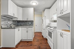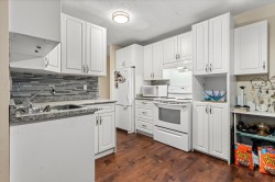 Great value here with one of the lowest priced 1 bedroom/1 bathroom condos, located at Ridgewood Court. The updated Kitchen offers newer cabinets, countertops, tile backsplash and flows into the open concept dining/living room and out to the private sundeck that overlooks a greenspace! The low strata fee of $305.93 includes heat & hot water! One secure under-building parking and storage locker included. Conveniently located steps to shopping, restaurants, transit, recreation, hospital and medical buildings! Relish the peace of 55+ adult living. Call today to book your private showing! QUICK POSSESSION AVAILABLE!
