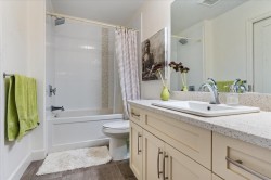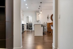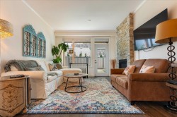 This two bedroom plus den residence sits in the sought after, upscale community of Englewood Courtyard. No detail was overlooked, featuring quartz countertops, stainless steel appliances, and a floor to ceiling stone fireplace in the living room. A standout feature of this ground level home is the spacious, turfed and fenced yard, offering seamless indoor/outdoor living with a patio and abundant natural light. Two storage lockers are included, one across the hall and another located in front of the underground parking stall. Pets are permitted. The lease fee is $151.14 per month and HOA fees are $397.58 monthly. The building includes a car wash area, woodworking shop, and a highly active community clubhouse for resident enjoyment. Come see it for yourself. Today!!!