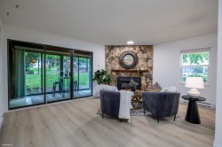 Magnolia Manor offers a stylish one-level (ground level) end unit combining comfort + tranquility. With 1,332 square feet, this home features three bedrooms + two full baths, including a spacious living room with a gas fireplace. Nestled against a beautiful park + water feature, it provides peaceful views and a connection to nature. The open layout allows for ample natural light, with a bright solarium perfect for morning coffee and a private patio for outdoor relaxation. Located close to new shops downtown and amenities, this home blends modern living with serene surroundings. Recent upgrades include new windows, flooring, paint, light fixtures, ductwork, washer/dryer, hot water tank, fridge, sink/faucet enhancing both appeal + functionality.