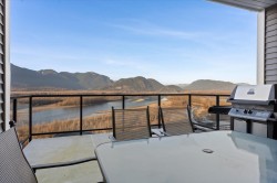 SPECTACULAR FRASER RIVER VIEWS from 3 patios and expansive picture windows to highlight the natural beauty visible from almost every room! This 3000+ sqft home is a must-see. The main floor features a gourmet kitchen with stainless appliances, a gas range, tons of storage w/ shaker style cabinets, island and quartz countertops. A large covered patio off the dining area is the perfect place to take in the view year-round. The upper floor offers 3 bedrooms, including a master suite with a walk-in closet, 5pc ensuite with a walk-in shower and soaker tub, PLUS A PRIVATE PATIO with MOUNTAIN & VALLEY views! Central A/C, fully finished basement with a 4th bedroom, full bathroom & huge, bright rec room. Call to arrange you private tour today!