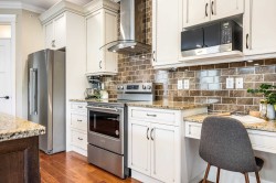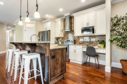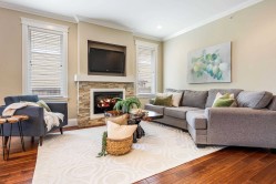 NO STRATA, NO STAIRS, NO ELEVATORS! This beautiful RANCHER styled 1/2 Duplex built by Agra Bros is located on a cul de sac in beautiful Garrison Crossing and may be just what you are looking for! With 2 bed/bath, this one level home has a fully fenced private back yard, lovely covered back deck, a detached single garage and is filled with all your must haves. Features include an open floorplan, large windows, beautiful hardwood floors, cozy fireplace in the living room, granite counters, stainless steel appliances, breakfast bar styled island and a full size pantry. Separate laundry room (yeah!), a walk in closet in primary, built in vac, air conditioning and lots of storage! Close to all amenities!