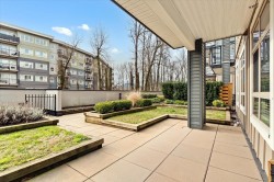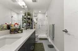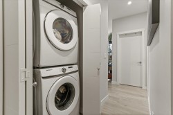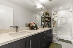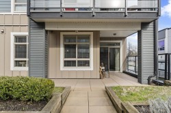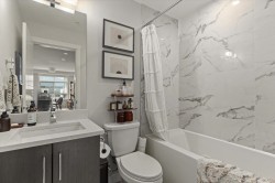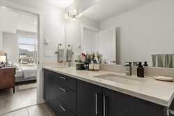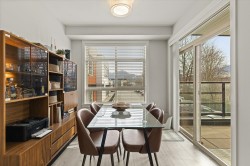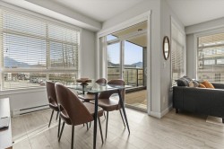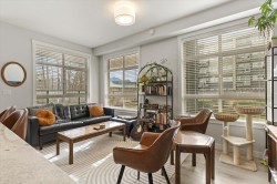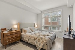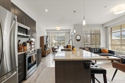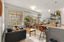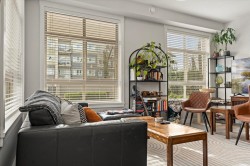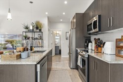 Step into a home that feels calm, open, and subtly refined from the moment you arrive. This bright corner residence opens onto the south-facing terrace--an effortless extension of your living space, ideal for morning coffee, fresh air, and easy indoor-outdoor living. Oversized windows and southeast exposure bring in soft sunrise light and mountain views, while the open-concept living, dining, and kitchen area flows naturally around a quartz-topped island and stainless steel appliances. Two well-separated bedrooms offer flexibility, with a primary suite that feels like a true retreat, complete with a walk-in closet and oversized ensuite. At 938 sq ft--the largest floor plan in The Elliott--this home balances space, light, and modern comfort, in a desirable and convenient location.