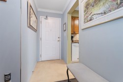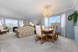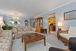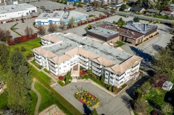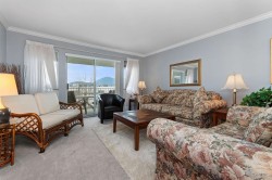 Downsize Without Compromise! This Elegant 2 Bdrm 2 full Bath, CORNER CONDO is located in a desirable residential area, offering one of the most sought-after layouts in the building. 1,240sf of thoughtfully designed space, with large living rm/dining plus sep. family rm., storage throughout & complemented by an abundance of windows for natural light. 2 sliding doors lead to the deck with MOUNTAIN VIEWS. Option to purchase fully furnished, u/g parking & storage locker on the same floor. You'll find 55+ ELMWOOD TERRACE, a spotless, quiet community; very well-maintained with a proactive strata, amenities of gym/games rm and social area for gatherings. Ideal for the discerning retiree buyer, seeking a peace of mind purchase. Monthly fee includes heat.