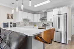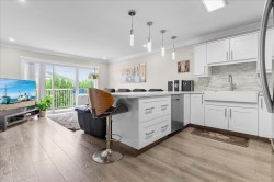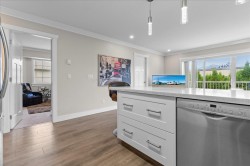 Be impressed by this large THREE BEDROOM corner condo at McIntosh Village! You'll love the floor to ceiling renovations and an abundance of living space. This suite features trendy laminate floors, updated LED lighting, crown molding, and in-suite laundry. A gorgeous white kitchen with quartz counters and an eating bar is the focal point of the open living area and offers plenty of cabinetry. From the living area, step out onto the private balcony with mature landscaping all around. The bathroom is also beautifully updated with slate tile and white cabinetry. Extra perks include an in-condo storage room, affordable strata fees, and top-floor living. Conveniently located between Sardis and Chilliwack's rejuvenated downtown, this condo is the ideal home for a first time buyer. SHOWS A TEN!