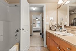 Westgate! Well-designed 2 bedroom, 2 bathroom home plus a versatile den and in-suite storage room. This functional floor plan offers open-concept kitchen, dining, and living spaces with access to a private balcony. Both spacious bedrooms feature walk-through closets and private ensuite bathrooms, providing excellent separation and comfort. The well-maintained complex offers a welcoming entrance, lounge and community room, guest suite, gym, pool table, elevators, and wide hallways. Secure parking, bike storage, and pet-friendly living (1 cat or 1 dog up to 15" / 18 lbs). Ideally located within walking distance to schools, hospital, recreation, parks, and all amenities. Book your showing today!
