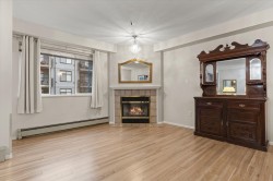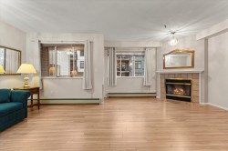 Rosewood Gardens is conveniently located within WALKING DISTANCE to transit, Leisure, Shops, Restaurants & the Hospital. This SPACIOUS 2 bed/2 bath unit, one of the LARGEST floor plans in the building w/over 1300 ft², offers EXCELLENT VALUE! While it could benefit from a bit of TLC, it is priced accordingly, allowing buyers to customize & add their personal touch! Large kitchen w/tons of cupboards & a nook area. Dining & Living rm feature a cozy fireplace. Oversized primary bed w/WI closet & ensuite. Other features incl. laundry rm & private balcony. The well maintained building has seen major updates. Strata fees INCLUDE: Heat (radiant hot water) natural gas, garbage, water & snow rem. Besides peace of mind, this 55+ community offers a common rm w/pool table, guest suite & much more!