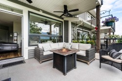 Welcome to Waters Edge! Experience unobstructed Fraser River views from all three levels of this stunning 4-bedroom, 4-bathroom townhome. The open-concept main floor showcases a sleek kitchen with quartz countertops, stainless steel appliances, a large island & a spacious dining area —perfect for entertaining. The inviting living room features a cozy fireplace & opens onto a patio where you can soak in the breathtaking views! Upstairs you will find 3 bedrooms including the primary suite with its own private patio, a spa-inspired ensuite with a soaker tub & dual sinks, and a generous walk-in closet. Downstairs, the fully finished walk-out basement provides even more living space with a 4th bedroom, full bathroom, and versatile rec room. Additional highlights include a double garage and A/C!