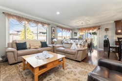 Welcome HOME to #3 in Halcyon Meadows, a prestigious gated community nestled in the heart of Sardis. This 2 bdrm, 2 bath former show home measures approx. 1406 sq.ft and is full of features you'll love including but not limited to: great room layout, spacious bedrooms, extra windows, crown moulding, geothermal heating/cooling, built-in vac. Kitchen has wrap-around island w/ breakfast bar & S/S appliances. Primary is BIG w/ extended length walk-in + ensuite. Outside boasts a private & covered patio, and large wrap-around yard that's fully fenced. Additional highlights include a dbl garage, and full crawl space for extra storage. There's a fantastic & active clubhouse (just a few steps from #3) available w/ guest suite, exercise/game rooms. RV Parking. 45+ living.