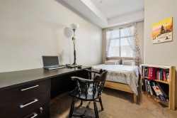 FABULOUS 2 bed, 2 bath + DEN located within walking distance to shopping, transit, recreation & MORE!! This SPACIOUS 1,114 sq.ft condo boasts a great layout. Walk in to find a sizeable den - PERFECT for an office, guest room, or more storage! Open concept kitchen w/large island blends seamlessly into the living & dining areas w/massive window allowing for AMPLE natural light throughout! The primary bedroom features a large closet area & 4 pc ensuite w/dual sinks! Another bedroom on the other side w/lots of closet space, a 4 pc full bath & laundry room make this a desirable unit for those looking to downsize but needing more space than the average condo. Schedule your showing today!