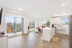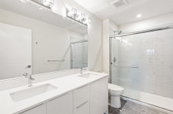 Welcome to “The Robson'' one of the most desirable floor plans in the building. This bright corner 2-bed, 2-bath home offers an ideal layout with two spacious parking stalls and a large storage locker, perfectly suited for modern living. Located in Chilliwack’s historic district, just minutes from the revitalized Downtown Chilliwack, this home combines charm with convenience. The open-concept living space is flooded with natural light and showcases contemporary finishes, including a gourmet kitchen with quartz countertops and stainless steel appliances, perfect for entertaining or everyday living. The primary bedroom features a walk-through closet and a private ensuite, creating a true retreat. Enjoy the comfort of a well-designed layout, excellent natural light, and a prime corner home.