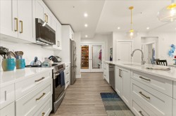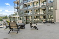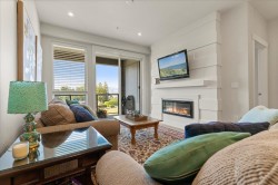 Sophisticated two bed, two bath + den Condo w/ bright open floor plan, lovely deck with unobstructed mountain views. One of the few units that offer 2 SECURE UNDERGROUND PARKING STALLS & 2 STORAGE LOCKERS. Adult luxury living, age 45+, built with the retiree lifestyle in mind offering a luxurious contemporary design and modern amenities for an upscale living experience. This inside unit comes fully upgraded with wide plank vinyl flooring, Silestone quartz counter tops, quality white cabinetry, full upgraded appliance package, A/C, electric fireplace. Clubhouse with roof top patio, outdoor kitchen, fire tables, 2 guest suites and walking distance to grocery shopping, banks, and more!.