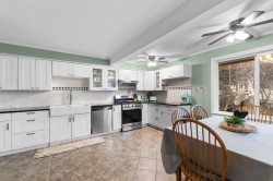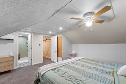 Beautiful home on Riverside Dr w/ 2 bed in-law suite! This wonderful home offers convenience and charm, just minutes from shopping and recreation. The main floor features an open-concept kitchen with white cabinetry, granite countertops, a farmhouse sink, and plenty of space to cook and entertain. The cozy living room includes a wood-burning fireplace, and the main level is completed with two generously sized bdrms and a full bath. Upstairs, you’ll find a large primary bedroom retreat with a newly renovated bathroom. Bsmt features 1,000 sq. ft. 2 BED IN LAW SUITE! Fully fenced yard w/ shop. Updates include metal roof, hw tank (2023), AC/heatpump, stucco, deck, windows. Truly turn key! Pan handle bare land strata, shared driveway, no fees / restrictions.