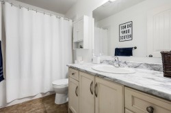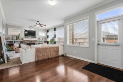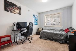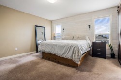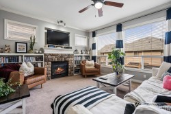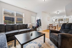 This spacious home offers 5 BED, 4 BATH, & a bright 1BED SUITE. The main level features open-concept living with an updated kitchen, quartz countertops, white cabinetry, stainless steel appliances, a gas fireplace, and large windows with mountain views, plus a formal dining room, den, laundry, and powder room. Upstairs includes five generously sized bedrooms, highlighted by an oversized primary with a walk-in closet and a 5-piece ensuite. The lower level offers a family room and a fully self-contained, above-ground legal suite with in-suite laundry. Central AC Located on a flat street next to green space & a peaceful pond, Mins to the freeway and parks close by, this home combines space, comfort, and a serene setting.