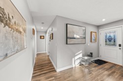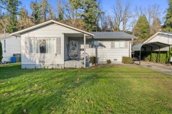Renovated 3 bed, 2 bath Rancher with mountain views on a 7500+sqft lot and a big private fenced back yard. R1-A zoning which has the potential for a coach house(buyer to confirm). Numerous upgrades including: lighting, baseboards, flooring, water heater, front door, roof/eavestroughs (6Months), metal carport, garden shed (4 months), and 10x20 heated/plumbed greenhouse. Covered entry, bright living room with gas fireplace & mountain views. Spacious kitchen with loads of cabinets/counter space with attached dining area & convenient mud room/laundry at the rear. The primary bedroom has an updated 2 piece ensuite & there are 2 more spacious bedrooms with an updated full bathroom. Privacy hedge in the front, covered deck in the back, parking for 8, close to school/shopping/golf!