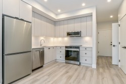 NO GST!!. Nestled in Garrison Crossing, The York Residences by Diverse Properties is a quality development constructed by preeminent local builders. This modern 1 Bed plus Den, 1 Bath functional and open layout features stainless steel appliances, white quartz countertops, and an efficient heat pump AC system to keep you comfortable throughout the year! Located in one of Chilliwack’s most desirable and vibrant areas and only a stroll to UFV / Canada Education Park, Vedder River trails, Cheam Leisure Center, groceries, restaurants, local breweries, coffee shops and endless activities. This 1 year old unit is vacant, presents as "like new" condition and has NO GST!!