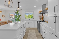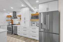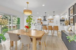 South Sardis LOCATION, and a beautifully renovated 2 storey home with full bsmt. The main show piece of this home is the beautiful kitchen w/lots of cabinets & large island. Modern, functional, and spacious, opening up to d/r & family room w/ gas f/p. Covered deck overlooking large backyard makes easy BBQ traffic through to the kit. Laundry also on main flr as well as den w/extra tall ceilings. 4 beds on upper floor, incl. primary with WIC & full ensuite. Fully finished bsmt with separate entrance and income potential for long term tenant. Prime location for short term accommodation. Minutes from world class fishing, Cultus Lake, Cheam Leisure Centre, UFV & shopping. Double car garage with extra storage, HWT 2019, furnace & A/C 2023. This is a great package in an excellent neighbourhood.