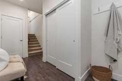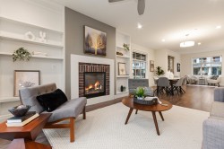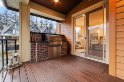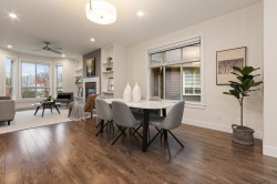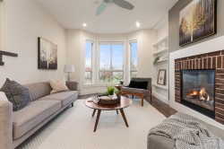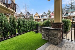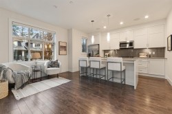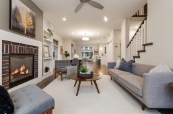 This move-in-ready, Manhattan-inspired end-unit Brownstone in Garrison Crossing features an open floor plan with 4 bedrooms, 3 bathrooms, and high-end finishes throughout, including newer flooring and paint. This city-inspired walk-up is centrally located in a prime location, backing directly onto a city park. The main floor is perfect for entertaining around the kitchen island or relaxing by the fireplace. Recent exterior upgrades include an expanded driveway, turf and fenced sitting areas, a gorgeous interlocking brick patio, composite balcony, and outdoor kitchen. Ideally located in the heart of Garrison Crossing, just steps from shopping, dining, recreation, and the Rotary Trail, with quick access to the freeway and top-rated schools. Enjoy low-maintenance living with NO STRATA FEES.
