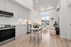 2 BEDROOM GARRISON CROSSING PENTHOUSE condo in the YORK RESIDENCES! This modern & airy home features high ceilings, abundant natural light, in-suite laundry, stainless steel appliances, quartz counters, & 3 A/C heat pump units for year-round comfort in the living room and both bedrooms. Spacious covered balcony with breathtaking mountain views. Secure underground extra wide parking and storage locker. Steps from vibrant shops, restaurants, and essential services. Just a short stroll to schools, University of the Fraser Valley and Vedder River Trail, this location offers the very best of lifestyle and walkability. Whether you're a first-time buyer, downsizer, or investor, this home is an incredible bargain & opportunity to experience everything this thriving community has to offer! Pets ok!