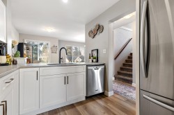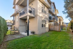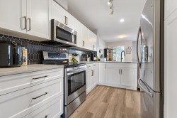 Fantastic 3 bed END UNIT townhouse in a PRIME central location! The stunning kitchen features white soft-close shaker cabinets w/TONS of storage, SS appliances, quartz countertops, chic backsplash & eating bar. Seamlessly flowing into the SPACIOUS living area w/shiplap gas f/p & large windows allowing for AMPLE natural light throughout. The cozy balcony is just off the lovely dining area and includes a gas BBQ hookup! Upstairs offers 3 generous bedrooms — the primary boasts a 3 pc ensuite w/W.I.C! The other 2 rooms feature window seats & sizable closets, plus laundry upstairs. Downstairs includes a 2 pc bath & flex space IDEAL for a rec room, office, or guest room, PLUS a cute fenced yard PERFECT for young families. A SUPERB place to grow, gather, and call home.