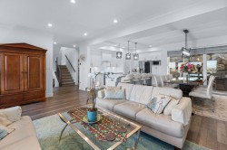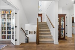 Thoughtfully designed 3 storey home offering 5 bedrooms + den and 4 bathrooms! Enjoy stunning golf course views from every level, highlighted by soaring 14’ ceilings, hardwood floors, quartz countertops & high-end stainless appliances, inc a natural gas range. The main living space features an open layout with a statement kitchen, spacious dining area, front-facing deck & a quiet den/library overlooking the ALR w/incredible sunset views. Upstairs you’ll find the primary retreat with 2 walk-in closets and full ensuite, plus 2 additional generous bedrooms & another full bath. The lower level includes a double garage, media room, 2 bedrooms, full bathroom & separate entry w/ suite rough-ins for an easy future conversion. Low monthly bare land fees, limited restrictions, & plenty of parking!