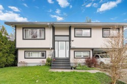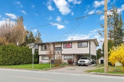 The perfect family home or investment! Sitting on a huge 8700 SQFT LOT - NO EASEMENTS OR RIGHT OF WAYS! This updated home features 3 bedrooms up, a stylish bathroom, and a large covered deck with Mount Cheam views and gas BBQ hookup. Bright 1-bedroom suite below with separate entrance, separate laundry, updated bath, and ductless heat pump—ideal as a mortgage helper or in-law suite. Fully fenced yard with drive-through carport, RV parking, and space for a shop or carriage home (verify with city). Minutes to Highway 1. Furnace, HWT, windows, siding, and 200-amp service with A/C rough-in all updated. Move-in ready!