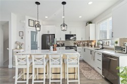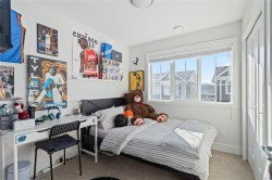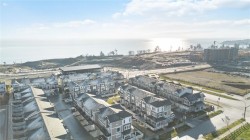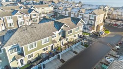 Experience "Compass" in Royal Bay! This 2021 GableCraft luxury townhome is loaded with upgrades. The open main floor features 9' ceilings, a custom built-in electric fireplace with ambiance settings, and a chef's kitchen with a new island, walk-in pantry, and new black stainless appliances (less than 1 yr old) including a gas range. Enjoy a 20'+ sunny balcony with peek-a-boo water views. Upstairs find 3 beds, a laundry room with custom counters/shelving, and a primary suite with walk-in closet and spa-like double vanity ensuite. The lower level offers a 4th bed/den leading to a private fenced yard. Highlights: double garage with EV hookup, gas furnace, gas hot water on demand, and low strata fees ($333/mo) including water/garbage. Walk to the beach, schools, and shopping! Meticulous condition with new home warranty. Best in class—book now! All sizes approx; Buyer to verify.