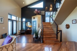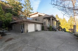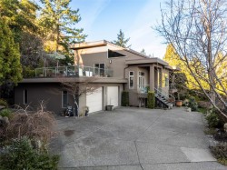 Welcome to 3354 Haida Dr on Triangle Mountain. This custom 4,400+ sqft, 5 bedroom, 4 bath home has beautiful south facing ocean and mountain views that are respected from all focal points of the home. Constructed with ICF from the ground floor to the ceiling, this unique floor plan is immediately welcoming with its 20ft high ceiling entry into an open floor plan kitchen/living/dining and finished off with a spectacular adjoining sunroom. The second tier up to the top floor has an expansive patio to be utilized as is or expand to add another bedroom with ensuite. The upper lvl, features add'l family or sitting room, with primary, walk-in closet, ensuite and private south facing balcony. The lower lvl contain a well kept 2 bedroom suite, second bdrm, and easily convertible work space to add'l bedroom if needed. This 2006 custom build was awarded the Gold CARE Award for Best Custom Home over 4.500sqft & is a must see property with very low maint., tranquil rocky back yard and so much more