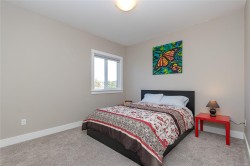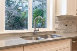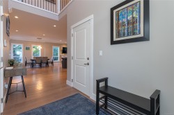 The perfect family home awaits. Built in 2014 this home offers a rare & sought-after floor plan w/4 spacious bedrms on the upper level. Tucked away on a quiet cul-de-sac adjacent to a natural green space park, enjoy exceptional privacy & tranquil forest views through floor-to-ceiling windows that flood the home with natural light. The no-step entry main floor features a bright, open living space ideal for family life and entertaining. The kitchen boasts quartz countertops, walk-in pantry, freestanding island, n-gas stove, and a window overlooking the backyard. The living room features a n-gas fireplace, park outlook, while a versatile family room works well as a media room, office, guest space, or playroom.Upstairs, the sizable primary suite has a spa-inspired 6-piece ensuite w/ shower, soaker tub, and twin sinks. In-floor radiant heating throughout home. Pls notice the easy-care landscaping, EV charger in the double garage, walkable transit, short bike ride to beaches and amenities.