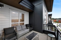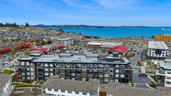 Enjoy panoramic ocean and mountain views from your private deck and inside enjoy modern finishes and large windows that flood the space with natural light. Better Than New, No GST! Welcome to Eliza at Royal Bay where contemporary design meets coastal lifestyle. Top floor, 2 bedroom, 2 bathroom, 2 parking stalls, Two dogs or two cats, Too good to be true! Entertain friends on the rooftop terrace with lounge areas, outdoor kitchen and common bbq, or in the owner's lounge complete with kitchen for larger gatherings. After your workout in the gym, take your dog (no size restrictions) for a wander through the beautiful community of Royal Bay or down to the beach and then stop in at the dog wash station to get fido clean fresh for the day. NO SIZE RESTRICTIONS> Groceries, cafes, dining, and so much more just out the lobby doors, everything you need is steps away. Life at Eliza is about ease, connection and the best of West Coast Living, all wrapped up into one perfect package.