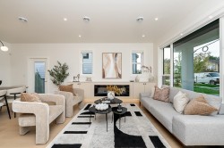 Tribeca by Century Sky Homes - feels like a detached home with a triplex sticker price. This nearly 2,000 sq ft residence features a bright open-concept layout with oversized windows that fill the home with natural light. The main floor offers seamless flow between the living, dining, and kitchen areas, perfect for family living and entertaining alike. Upstairs includes 3 spacious bedrooms plus a versatile den. Enjoy radiant in-floor heating, central A/C, and premium Fisher & Paykel appliances. Double parking with EV outlet and easy access to HWY 1. Thoughtfully built with quality and efficiency in mind. No strata fees. 2-5-10 warranty included.