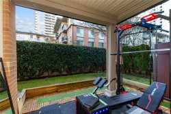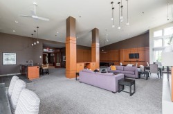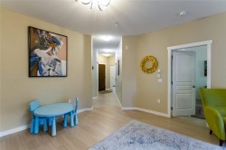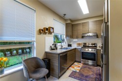 "Thomas House" at the Windsor Gate Community built by Polygon. Huge 1020 SQ' of functional living space on the ground level is perfect for young families or empty nesters. Unit has been well kept, it offers a functional layout with bedrooms separated by the living room for ample privacy. Open concept living/dining room combo. Beautiful big windows surround by trees make the unit feel like you're living in a forest. Huge patio is perfect for summer entertainment. Walk to Skytrain and enjoy strata amenities. 1 PARKINGS & 1 Storage locker. Access to the 18, 000sqf Nakoma Club that included an outdoor pool, gym, and basketball court. Walking distance to skytrain, parks, restaurants, shopping and schools.