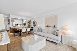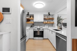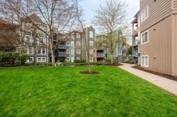 LAKESIDE TERRACE – ½ BLOCK FROM LAFARGE LAKE! Meticulously maintained 2 bed, 2 bath + flex home w/ a townhome-style feel. Flex space off primary bed is perfect for a nursery/child’s room/home office. Private walk-out patio w/ its own entrance—ideal for pets & guests. Bright west-facing exposure w/ an open, efficient layout. Upgraded kitchen & bathrooms w/ stainless steel appliances & floating shelves, plus laminate floors, crown molding & ample storage. Incl. 1 underground parking stall & 1 locker. Well-managed complex w/ clubhouse, gym & indoor pool. Prime location steps to Lafarge Lake, Town Centre Park, Evergreen Line, Coquitlam Centre, restaurants, and Aquatic Centre.