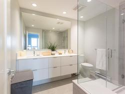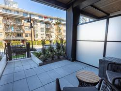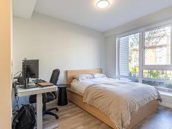 All the best advantages of a townhouse in this less than 1 yr old condo complex in Burquitlam. Walk-up stairs to a large covered patio. Bright & sunny open living room, dining room & kitchen, high end stainless steel appliances & gas range. Primary bedroom is large & bright, ample room for computer station, 4-piece ensuite bathroom with dual sinks, walk-in closet. Large 2nd bedroom away from primary bedroom for privacy. In suite laundry. Laminate/Tile flooring for cleanliness. 2 under ground parking stalls with EV installed charging & large locker near by. Skytrain, shops & eateries a short walk away.