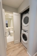 All the best advantages of a townhouse in this condo complex in Burquitlam. Walk-up stairs to a large covered patio. Bright & sunny open living room, dining room & kitchen, high end stainless steel appliances & gas range. Primary bedroom is large & bright, ample room for computer station, 4-piece ensuite bathroom with dual sinks, walk-in closet. Large 2nd bedroom away from primary bedroom for privacy. In suite laundry. Laminate/Tile flooring for cleanliness. 2 under ground parking stalls with 2 EV installed chargers & large locker near by. Skytrain, shops & eateries a short walk away. Open House Saturday and Sunday, Feb 21 and 22.