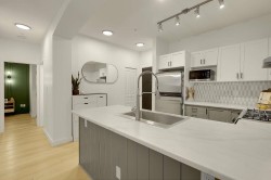 Welcome to Tantalus by Polygon Homes, a beautiful, extensively updated ground-floor home offering modern comfort and privacy in the heart of Coquitlam. This contemporary 2-bedroom, 2-bathroom residence features stylish renovations throughout and opens onto a 340 sq.ft. private patio backing onto peaceful green space—perfect for relaxing or entertaining. The updated kitchen is equipped with stainless steel appliances and flows seamlessly into the bright living and dining areas, while the well-sized bedrooms include a primary with ensuite. Residents enjoy resort-style amenities such as an outdoor pool, hot tub, and fully equipped fitness center. Ideally located just steps from the WestCoast Express, and Lafarge Lake, Coquitlam Centre, Parks, dining and more....