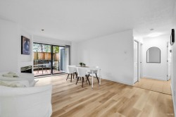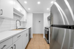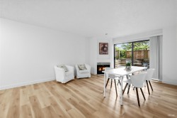 Beautifully renovated in 2025 by a European contractor, this spacious 1-bedroom plus solarium/flex home features new laminate floors, a modern kitchen, updated bathroom, new appliances, and stylish light fixtures. The open living and dining area accommodates full-size furniture and includes a cozy gas fireplace, with gas included in the $422 condo fee. The bright solarium works perfectly as a home office or den. Unique to the complex is the large, fully fenced, private covered patio, ideal for entertaining or gardening. Enjoy a walk-through kitchen with ample storage, in-suite laundry, and a fully rainscreened and repiped building. Just steps to Coquitlam Centre, Lafarge Lake, shopping, schools, and SkyTrain. A move-in-ready home combining modern renovations and outdoor living.
