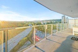 Welcome to SOCO by Anthem.This bright and thoughtfully designed 2 bedroom, 2 bathroom home offers a highly functional open layout that provides excellent comfort and privacy. The living and dining area is spacious enough to accommodate a full size dining table, making it ideal for everyday living and entertaining. The modern kitchen features quartz countertops, premium Bosch & Fisher Paykel appliances, a gas cooktop, and ample cabinet storage. Enjoy central A/C with heat pump, sleek laminate flooring, and a full-size washer & dryer. Step outside to an exceptional oversized covered balcony over 200 sq. ft. with rare unobstructed city and mountain views, perfect year-round. Residents have access to 43,000+ sq. ft. of resort-style amenities. Prime location. Elevated living. Exceptional value.