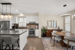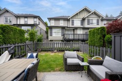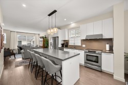 Fenced-in grassed yard off main floor! Stunning END-unit townhome by Polygon in Bridlewood, located in desirable Burke Mountain! Updated foyer with hard surface floors on the stairs. Fresh paint, new window coverings throughout and updated fixtures. The main floor features a beautiful kitchen with quartz counters, SS appliances, and an oversized island—perfect for entertaining. Beautiful French doors off the dining area lead to your private, fully-fenced backyard, while a cozy living room at the front offers a relaxing retreat. Upstairs offers 3 bedrooms, 2 full baths, & laundry. Spacious primary bedroom is a highlight, complete with a spa-like ensuite and incredible mountain views. A rare opportunity in a highly sought-after location! Elementary school across street.