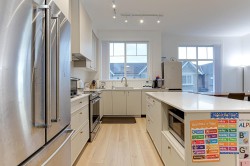 Sought after Riley Park by Mosaic in Burke Mountain area. This 4 large bedrooms and 4 bathrooms unit is the best floor plan and location in the complex, end unit facing the Riley Park. Three bedrooms upstairs with privacy and large side by side laundry. Open concept main level gives spacious living area and kitchen. It also has well maintained fenced backyard and one private bedroom in the basement. Upgraded engineered laminate flooring throughout bedrooms and stairs and designed wall in the living room. Within a block, a new Northeast Community Centre will be open next year.