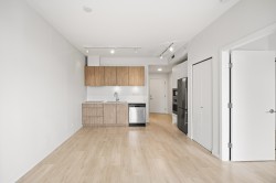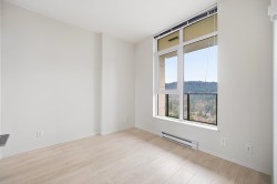 Welcome to Burquitlam Capital! This immaculate Jr. 2-bedroom offers mountain and city views, 9-ft ceilings, and a smart, efficient layout. The modern kitchen features stainless steel appliances, quartz countertops, and a functional island, opening to a bright living and dining area. Steps to Burquitlam SkyTrain, Lougheed Town Centre, shops, cafés, and restaurants. Enjoy rooftop garden with BBQ, fitness centre, lounge, and EV charging. Includes 1 parking and 1 storage locker. Ideal for first-time buyers or investors!