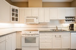 BEAUTIFULLY UPDATED LARGE, Bright, 2Bd 2 Bath CORNER SUITE OVERLOOKING LAFARGE LAKE, MOUNTAINS, COURTYARD FROM EVERY ROOM. Spacious Open Living & Dining Rm, Accommodates House Furniture. Huge Bright Open Gourmet Kitchen w/Eating Area & Family Rm w/Direct Views of LaFarge Lake, Mountains & Courtyard. Nicely Updated w/Granite Counter Top, Newer Appls, Sink, Faucet, Faux Wood Blinds + Lots of Cabinets. 9ft HIGH CEILING, Beautiful Crown Moulding & Baseboard w/Nice Laminate Flr & IN-FLR RADIANT HEAT THRU-OUT. Huge Master w/Walk-in Clst, Full Ensuite w/Dble Sinks & Large Soaker Tub. Private 2nd Bd on Opposite Side w/Full Bath & Shower. Amenities: Indr Pool, Hot Tub, Gym, Club House, Social Rm, Library, Workshop, 3 Guest Suite. STRATA FEE INCLUDES IN-FLR RADIANT HEAT, GAS, HOT WATER, AMENITIES